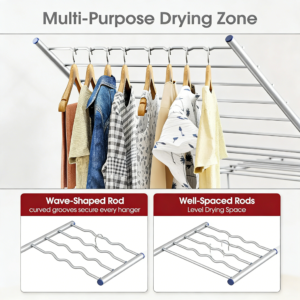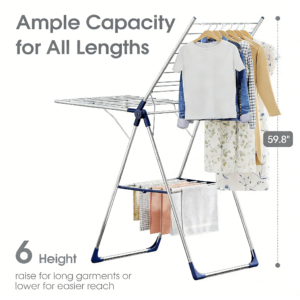 Be the first to review “Sakugi Clothes Drying Rack with Height-Adjustable Wings, Metal Foldable Laundry Dryer Stand for Clothing & Bedding”