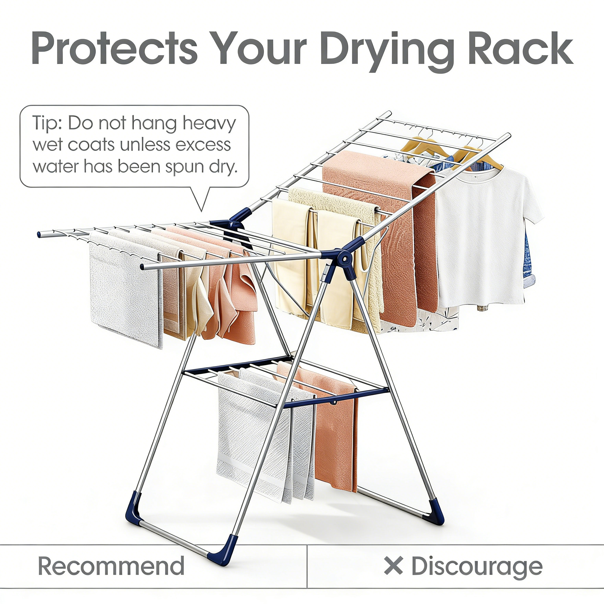 Sakugi Clothes Drying Rack with Height-Adjustable Wings, Metal Foldable Laundry Dryer Stand for Clothing & Bedding